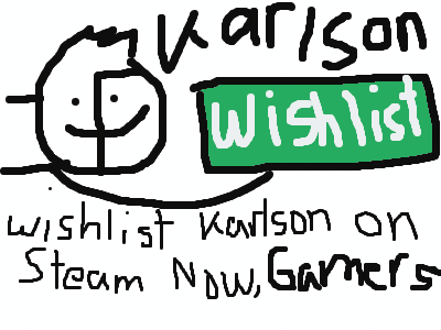 Anibot505Wait.. u don't know what Karlson is? its basically a game Dani's working on, and were working to make Karlson the #1 Wishlisted game on Steam, were currently 15th Most Wishlisted game SO WISHLIST IT NOW GAMERS