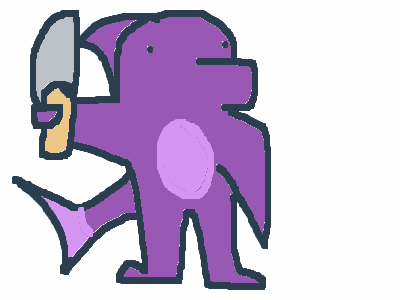 it's a barney the dinosaur holding a chainsaw