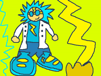 Lightning boy is a boy who has lightning powers, he is also a scientist and his favorite thing is science