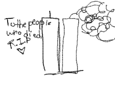 You are a heartless soul, you have no sympathy towards the 2000 people who had to die in a tragic way! DELETE THIS RIGHT NOW AND APOLOGIZE! IF I SEE THIS DRAWING OUTSIDE MY HOUSE ILL CALL THE COPS! You know how sad this is? You offended the entire USA, families and friends died, and your here drawing it? YOu even drew the plane crashing towards it. Atleast pay your condolence by drawing only 2 towers! My grandmother still cries upto this day because of the event and yet non of her friends or family members were involved in it, she felt bad for everyone! Take back everything and apologize to me and everyone whos family members died!