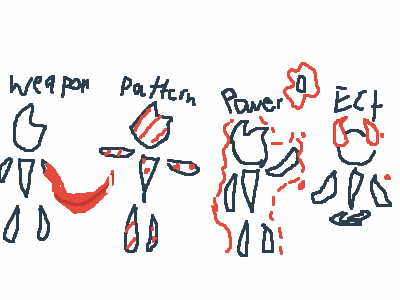 TRAngAthere are multiple diffrent variations of godmode, it varies between person, weapon summons a weapon to fight with, pattern is just a variation of godmode apperance, power allows some things to happen like auras and beams as well as telekenisis, ect. is just other godmode variations, like rezzy has a godmode type where he focuses the power in a certain spot to maximize damage.