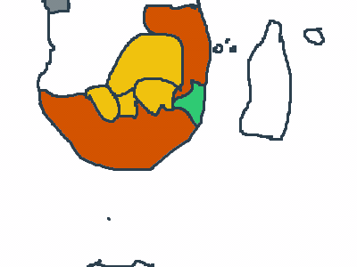 Asokovgreen depicts zulus, brown depicts colonial presence, yellow depicts boers and grey depicts the congolese states including, dgondo, congo and a few others