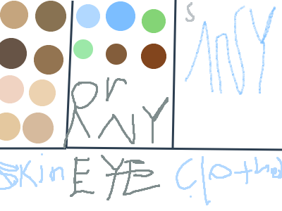 skin: mid brown,dark brown,light brown,tan,peach,light peach or (any) (i suggest doing a spin wheel to pick all options) i will make the spin wheel