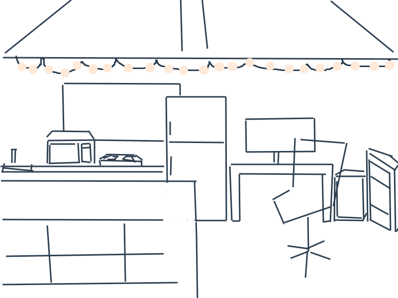 it so hard to draw but i have a straight kitchen and right next to it is my setup then my door
