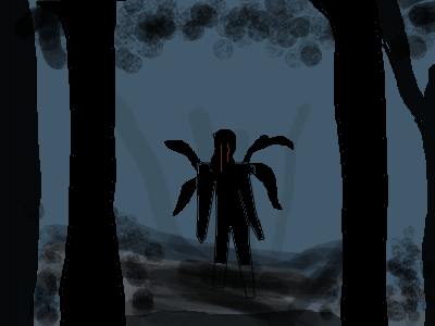 Presence can be recognized by the sound of humming. It appears in forests. It is hard to recognize but seems to be a black figure with tendrils writhing out of its back. Victims are usually runaway children, with eyes missing. Containment is impossible, for its ability to appear and disappear from any wooded land.