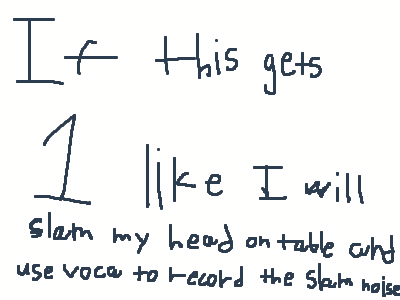 CookieTheRookie2"If this post gets 1 like (or any other reaction) I will slam my head on table and use voca to record the slam noise."